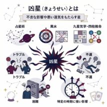 「今年は凶星が巡っているから注意が必要だ」 占い師からそんな言葉をかけられたら、誰だって不安な気持ちになるものです。しかし、占星術や九星気学、風水における「凶星」は、単にあなたを怖がらせ、不幸に陥れるための存在ではありま […]