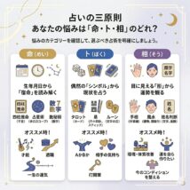 「人生の先が見えない」と感じたとき、私たちは占いに答えを求めます。しかし、星占い、タロット、四柱推命……選択肢が多すぎて、どれを信じればいいのか迷ってしまうことはありませんか? 占いは、単なる「当て物」ではありません。そ […]