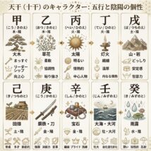 東洋占術を学ぼうとすると必ず目にする「甲・乙・丙……」という言葉。これらは天干(てんかん)、または「十干(じっかん)」と呼ばれ、古代中国から伝わる「天を流れるエネルギーの質」を10種類に分類したものです。 いわば、その時 […]