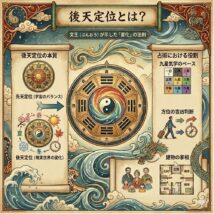 私たちが風水や九星気学で「北は水」「南は火」と呼んでいる方位のルール。それは「後天定位(こうてんていい)」という概念に基づいています。宇宙の理想状態を示す「先天定位」が「静」の設計図なら、後天定位は私たちが生きるこの世界 […]