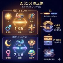 「卦(け)」という言葉を聞いて、何を思い浮かべますか? 多くの人は占いの不思議な記号をイメージするかもしれません。しかし、その本質は驚くほど近代的です。0と1の組み合わせで動くコンピュータのように、易経は「陰」と「陽」と […]
