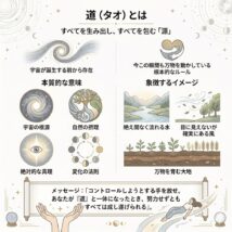 「頑張っているのに、なぜかうまくいかない」「常に何かに追われている気がする」――。もしあなたがそんな閉塞感を感じているなら、今こそ古代中国の知恵「道(どう/タオ)」に触れるタイミングかもしれません。 老子は言いました。「 […]