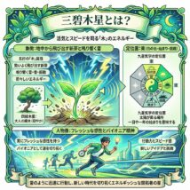 九星気学において、春の訪れを告げる「雷」と、天に向かって伸びる「若木」のエネルギーを司るのが三碧木星(さんぺきもくせい)です。暗闇を切り裂く稲光のような直感力と、音を立てて成長する植物のような生命力を秘めています。三碧木 […]