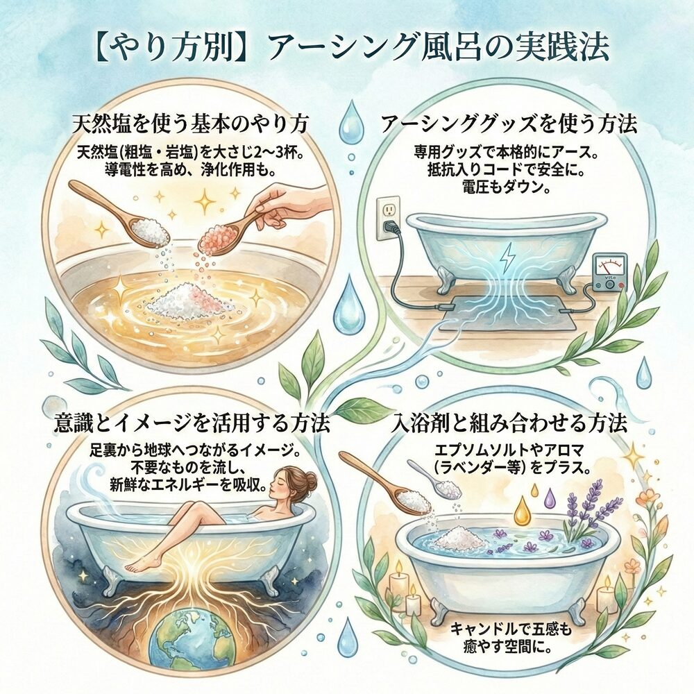 【やり方別】アーシング風呂の実践法