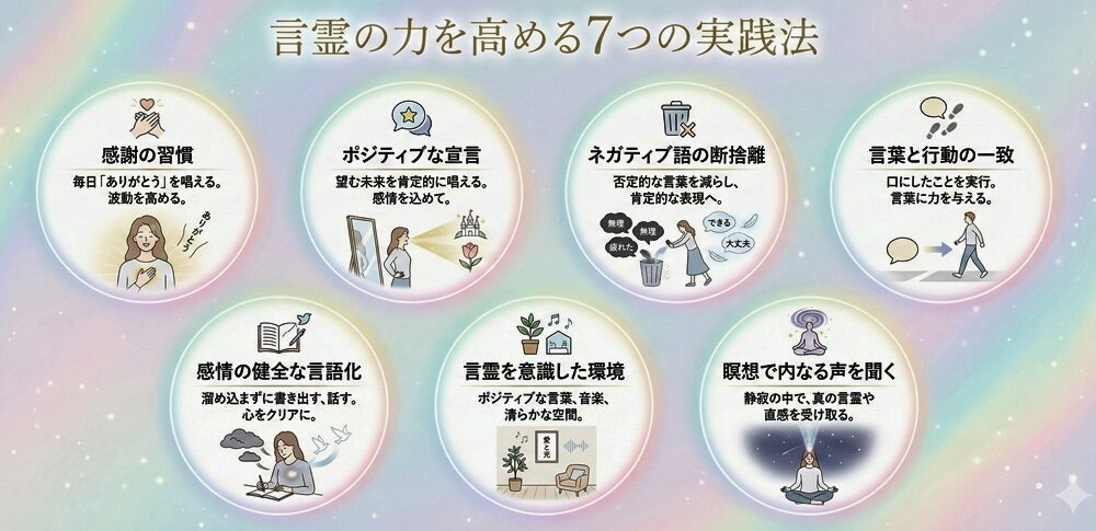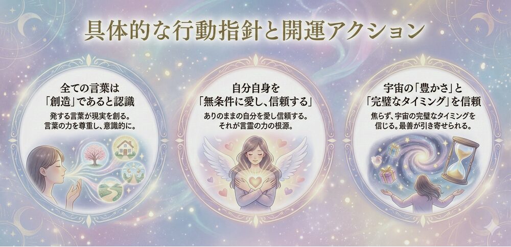 今日からあなたの言葉が持つ「言霊」の力を意識し、これらの智慧を日常生活に取り入れてみてください。あなたの内なる光が最大限に輝き、愛と豊かさに満ちた、より幸福な人生を創造していくことを心より願っています。