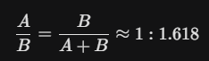 線分を Aと B の2つに分けたとき、「小さい方(A)と大きい方(B)の比」が、「大きい方(B)と全体(A+B)の比」と等しくなる状態を指します。