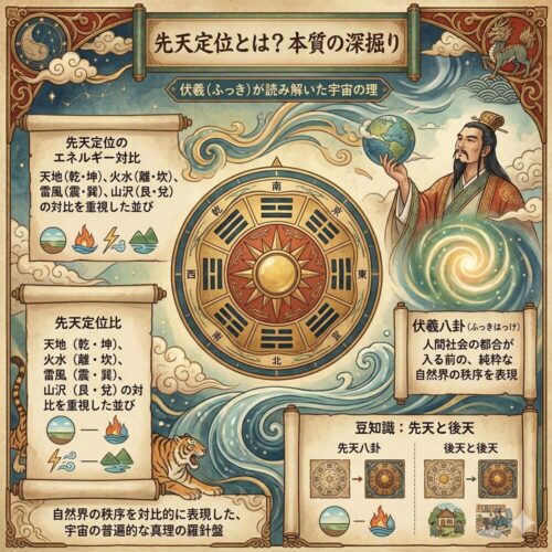 先天八卦が「宇宙の普遍的な真理(静的な体)」を表すのに対し、後天八卦は「現実世界での運用と変化(動的な用)」を表します。