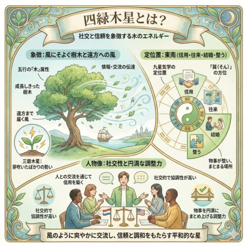 三碧木星は、五行の「木」に属します。同じ木属性の四緑木星が「風にそよぐ大人の樹木」なら、三碧木星は「地中から勢いよく飛び出す新芽」や「鳴り響く雷」を象徴します。