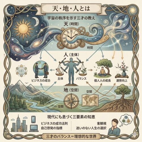 | 人(じん) | 意志・行動 | 蔵干(ぞうかん)等 | 天と地を調和させる主体。努力と選択で運命を動かす。 |