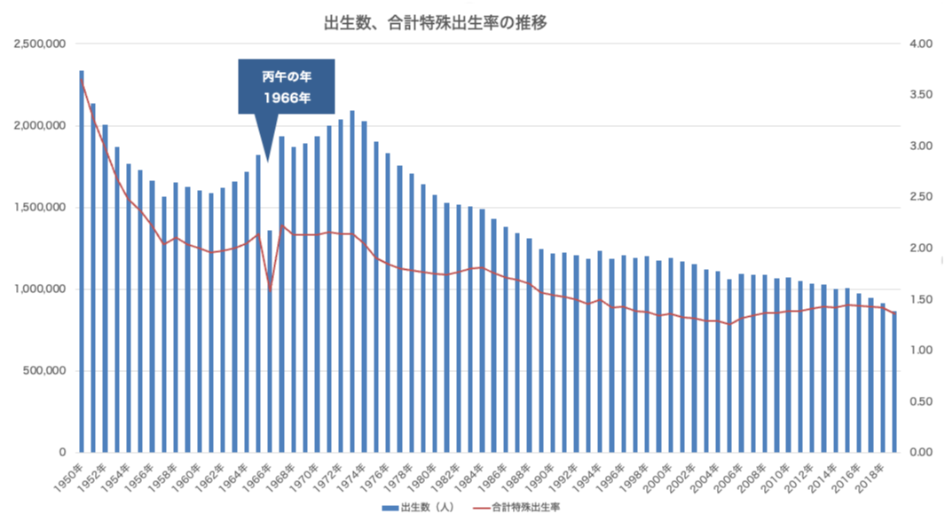 | 1966年 | 昭和41年 | 出生数が大きく減った年として有名 |