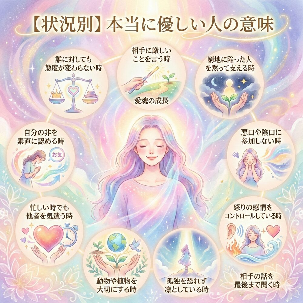 周囲に、ただ愛想が良いだけでなく、一緒にいるだけで心が軽くなるような「本当に優しい人」はいませんか?実は、彼らが放つ優しさには、単なる性格を超えたスピリチュアルな意味が隠されています。高徳な魂や高い波動を持つ人々は、存在そのものが癒やしとなり、周囲の運気まで引き上げる力を持っているのです。この記事では、本当に優しい人の特徴をスピリチュアルな視点から紐解き、その本質や幸運を引き寄せる理由を詳しく解説します。