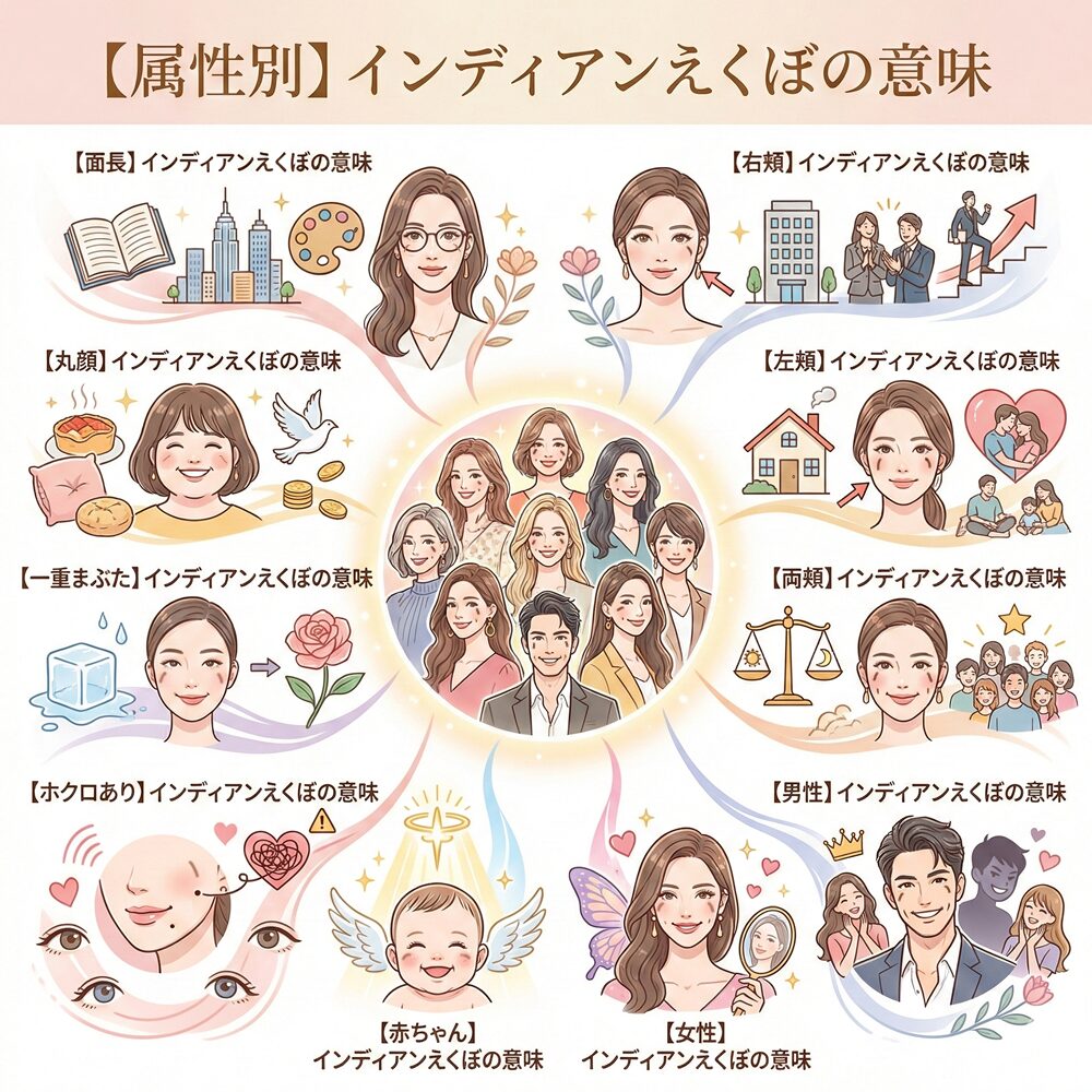 インディアンえくぼとは、単なる身体的な特徴ではなく、天真爛漫な心と人を惹きつける強力なパワーを秘めた「神様からのギフト」です。このえくぼがある人は、自由な精神と愛嬌を武器に、周囲を明るく照らす使命を持っています。