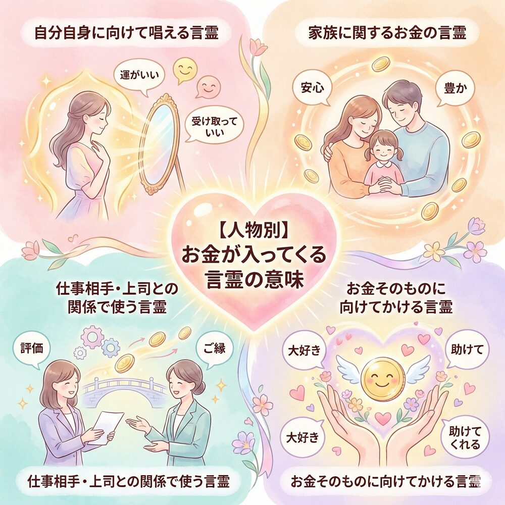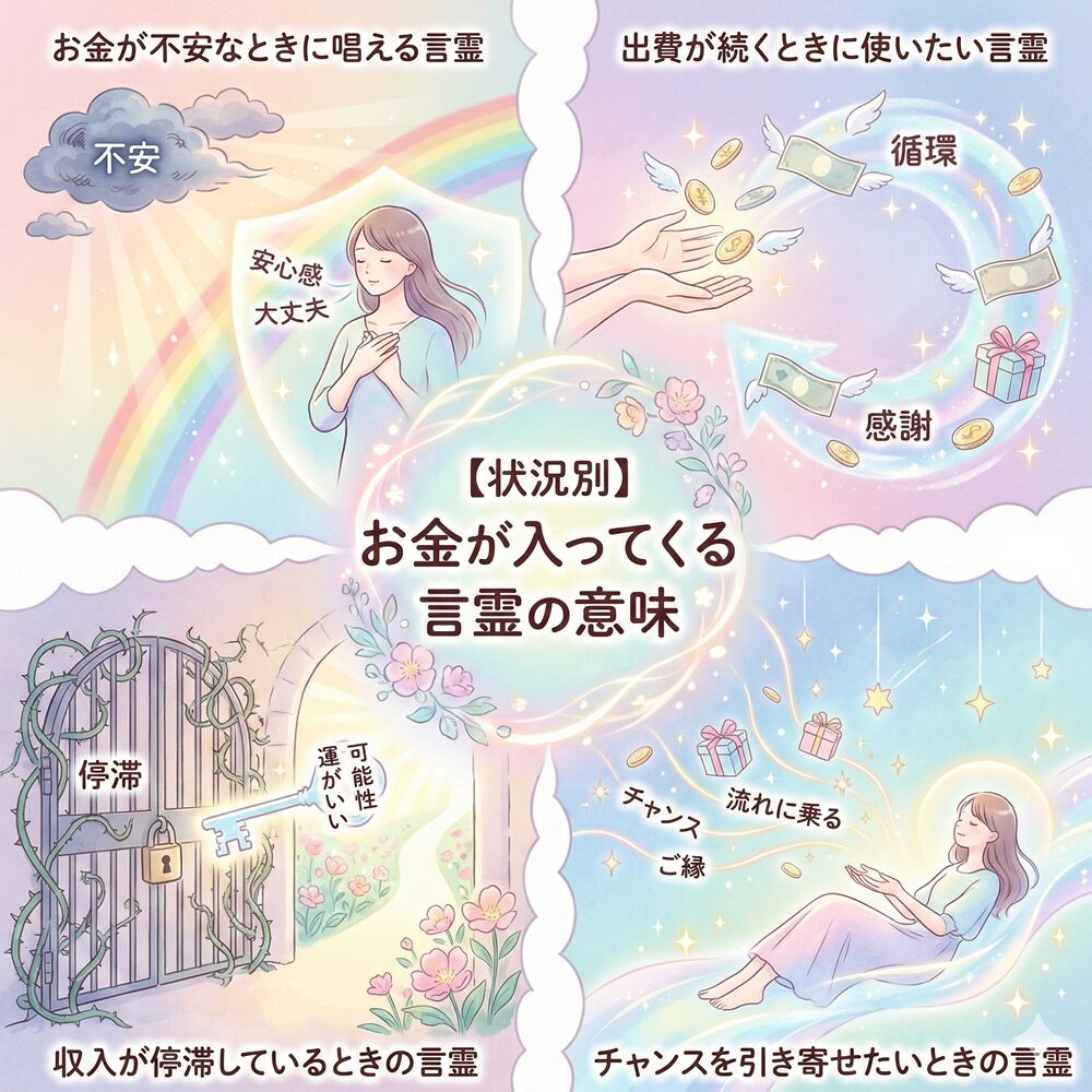 この記事では、お金が入ってくる言霊のスピリチュアルな意味を、状況別・人物別・場所別・色別など多角的な視点から解説し、日常に取り入れやすい考え方まで丁寧に紹介していきます。
