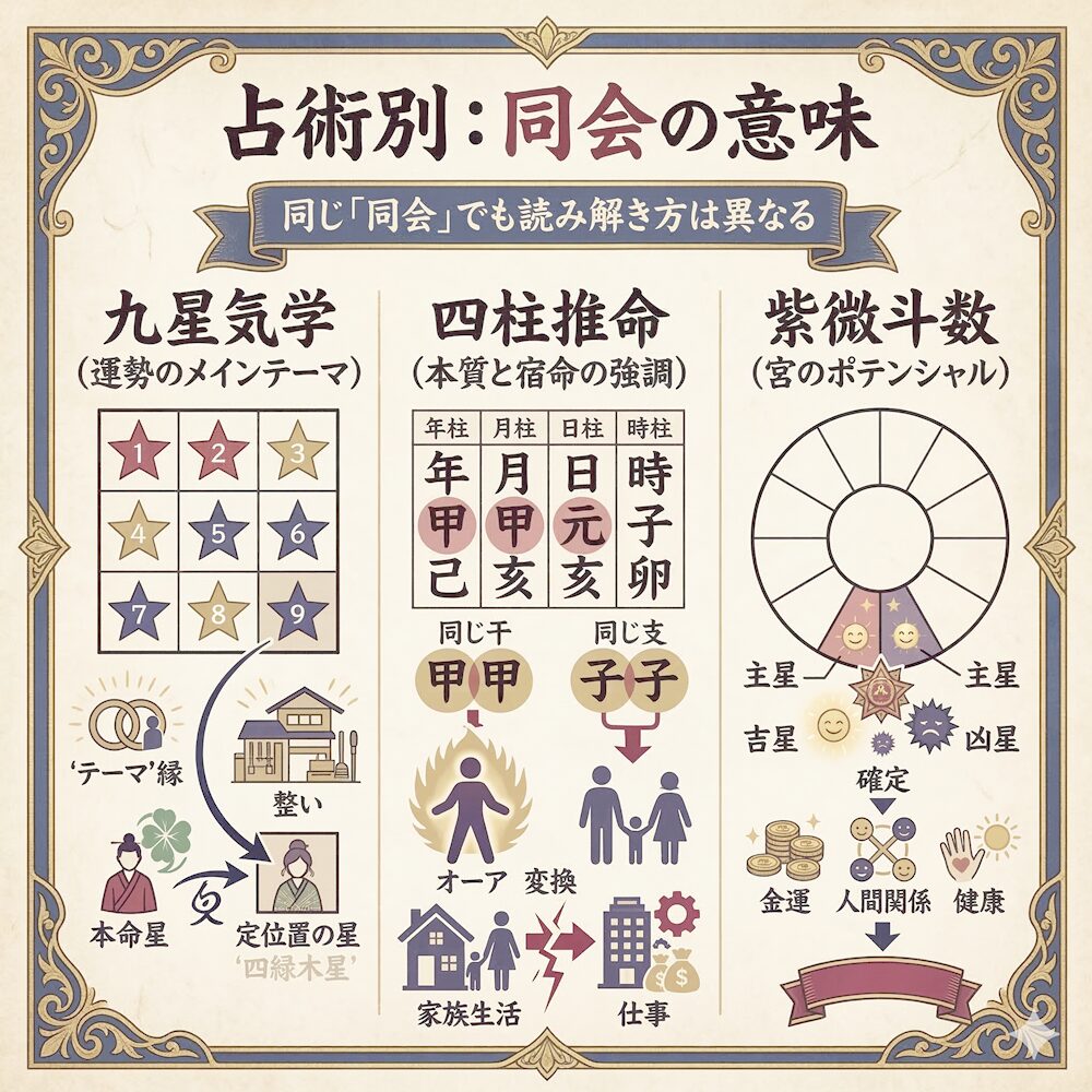 同じ「同会」という言葉でも、占術によってそのアプローチや読み解き方は異なります。