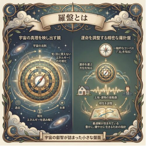風水師が手にする「羅盤(らばん)」には、必ずこの二十四山が刻まれています。磁石の針が指し示す一点から、周囲に記された幾重ものリング(層)を読み解き、時間と空間の交差点を割り出します。二十四山は、羅盤における「文字盤」のような役割を果たしており、これがないと風水の高度な数理計算(玄空飛星派など)は成立しません。