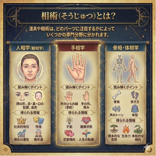 占いの世界には「三式(さんしき)」と呼ばれる分類があり、生年月日から宿命を診る「命術(めいじゅつ)」、姿かたちから判断する「相術(そうじゅつ)」に対し、卜術は「今、この瞬間の判断」に特化しています。