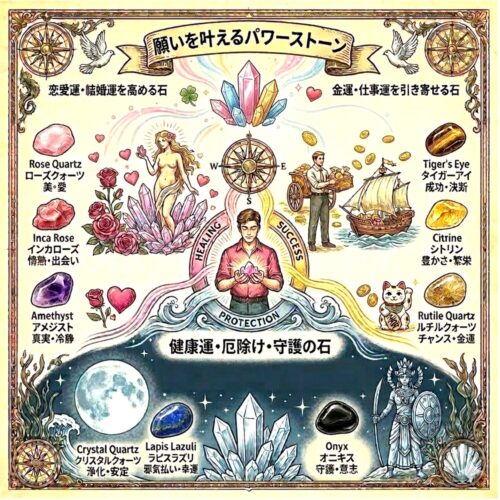| 瑪瑙(めのう) | 健康、長寿、人間関係の愛 | グラウンディング、心身の安定 |