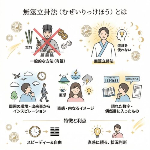 立筮は、古代から続く伝統的な占術であり、易経を基にした深い知識が必要な占い方法ですが、人生の重要な決断や運勢の指針を知るための手段として、現代でも重宝されています。