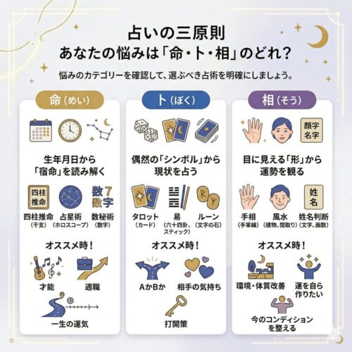 | スリー・ルーン | 3個 | 【状況分析】 | 「過去・現在・未来」や「原因・現状・対策」を多角的に。 |