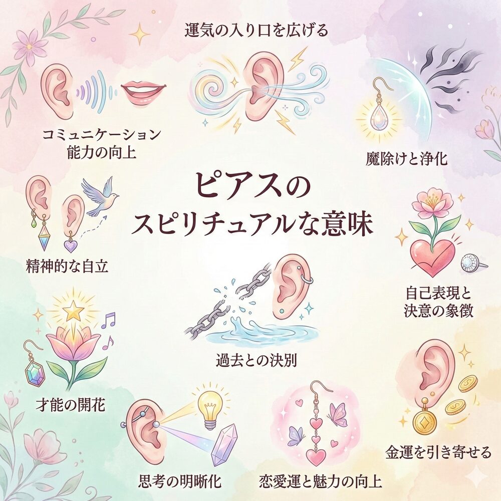 ピアスは単なるファッションアイテムではなく、古来より魔除けや身分象徴として用いられてきた、スピリチュアルな力の強いアクセサリーです。耳に穴を開けるという行為自体が「運気の通り道を作る」とされ、選ぶ場所や数、色によって引き寄せるエネルギーが大きく変わります。この記事では、ピアスが持つ深遠な意味と、運気を好転させるための具体的な選び方を詳しく解説します。