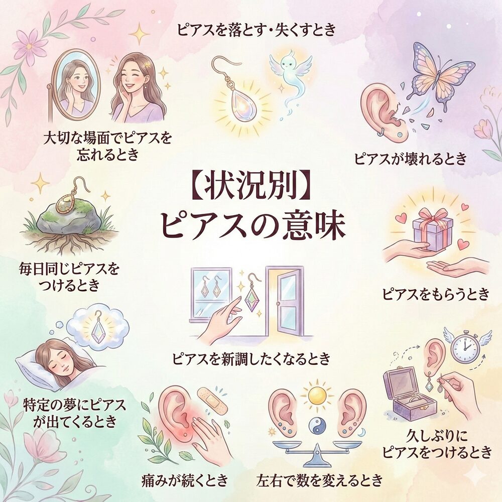 大事な日にピアスを付け忘れるのは、実は「素の自分で勝負しなさい」という高次元からのメッセージであることが多いです。装飾に頼らず、あなた自身の内面から溢れる輝きだけで十分通用するという自信を持つよう促されています。焦る必要はありません。その日のあなたは、飾らないありのままの姿で最高の結果を出せる状態にあります。