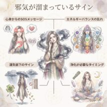 「最近なんだか調子が悪い」「理由もなくイライラする」「何をやってもうまくいかない」そんな状態が続いていませんか。もしかしたら、それは邪気が溜まっているサインかもしれません。 邪気とは、スピリチュアルな視点でネガティブなエ […]