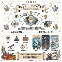 真っ白なキャンバスに描かれた象徴たちが、あなたの問いかけに応じて独自の物語を紡ぎ出す瞬間。それが「タロットリーディング」です。リーディングは単に「当たる・当たらない」を競う占いではなく、あなたの深層心理に眠る答えを、カー […]