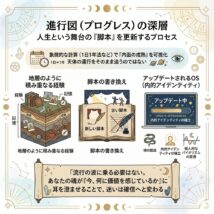 星占いで「今の運勢」を見る時、多くの人は空を流れる星の動き(トランジット)に注目します。しかし、あなたの人生という物語の「章」をめくっているのは、実は「進行図(プログレス)」という、もう一つの時計です。 進行図は、あなた […]