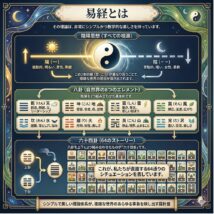 易(えき)は、古代中国から伝わる占いや哲学の一つで、宇宙や自然の変化を捉え、人間の運命や未来を予測するための方法です。易は、特に「易経(えききょう)」に基づいた占術を指し、陰陽思想や五行説と深く結びついています。易の中で […]