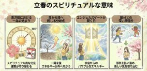 2月4日頃に訪れる「立春」は、暦の上で春が始まる日です。しかしスピリチュアルな視点では、立春は単なる季節の変わり目ではなく、宇宙のエネルギーが大きく切り替わる重要な転換点とされています。 風水や東洋の占いでは、立春こそが […]