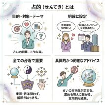 「私の運勢はどうなりますか?」 占いを受ける際、ついこんな風に漠然と聞いてしまったことはありませんか?実は、占いの結果が「当たる」か「外れる」か、あるいは「役に立つ」か「立たない」かを決める最大の鍵は、占う前に決める「占 […]