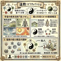 「道教(タオ / Daoism)」とは、古代中国で生まれた哲学・宗教の一つであり、宇宙の根本原理である「道(タオ)」に基づいて、自然と調和しながら生きることを重視する教えです。 老子(ろうし)や荘子(そうし)による哲学的 […]