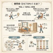 被同会(ひどうかい)は、東洋占術において特定の星やエネルギーが「他の要素から影響を受ける状態」を指す重要な概念です。 「同会(どうかい)」が自分から外側へ働きかける力を象徴するのに対し、被同会は「外から自分へと流れ込んで […]