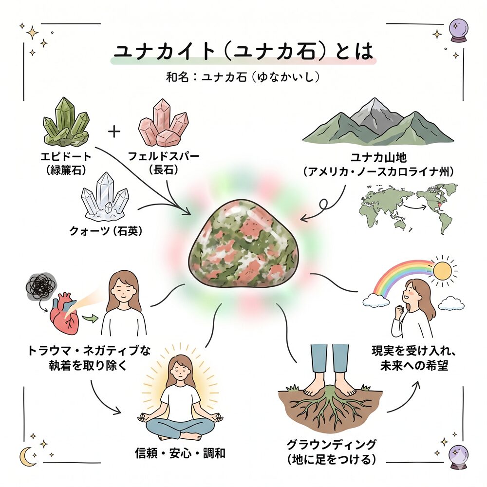 「考えすぎて心が疲れてしまった」「心と体のリズムがバラバラで、自分を取り戻したい」――。そんな、現代社会の忙しさの中でバランスを崩しそうなときに、どっしりとした大地のエネルギーで支えてくれるのが「ユナカイト」です。